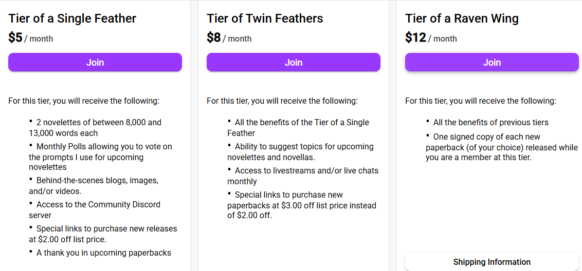 I will also be offering them in a subscription service named “Ream.” You subscribe for a set fee per month. There are three tiers of subscriptions, and each comes with different perks.